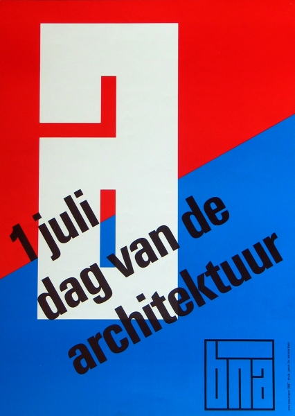 Vouwaffiche met een afmeting van 63,7 X 31,6 cm Opgevouwen een kwadraat van 16 X 16 cm. Eén verticale vouw en drie horizontale vouwen.