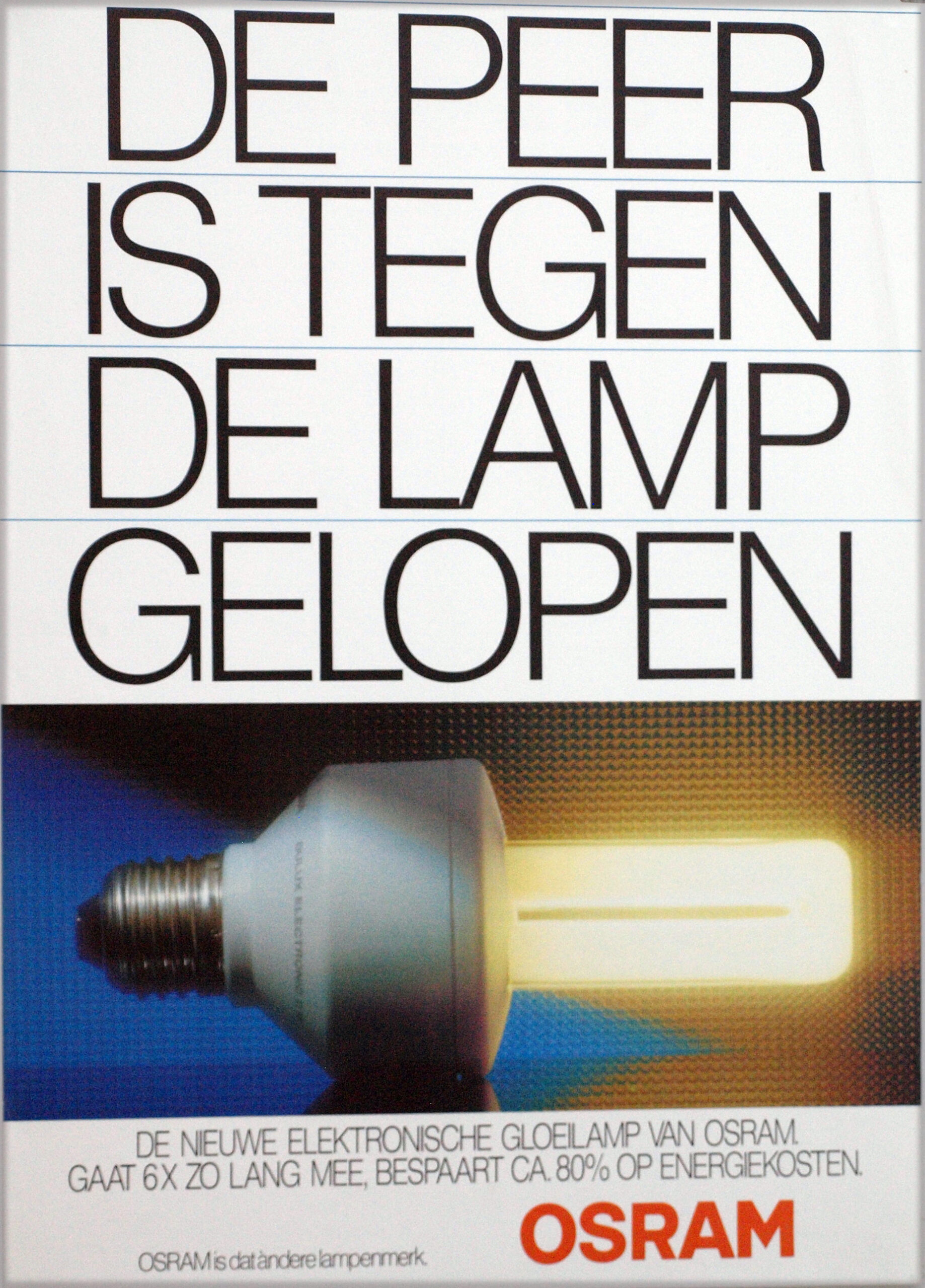 Affiche : OSRAM. DE PEER IS TEGEN DE LAMP GELOPEN.